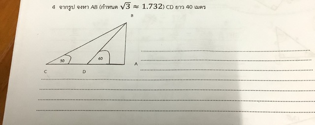 ตอบ: ถามการบ้านเรื่องโจทย์อัตราส่วนตรีโกณมิติ ม.3 ค่า