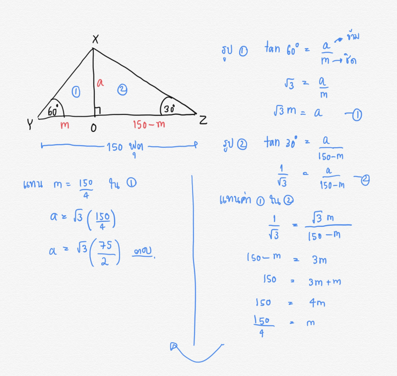 นี่ค่ะ โจทย์ไม่ได้บอกเป็นสามเหลี่ยมมุมฉาก แต่ก็ต้องเป็นแหล่ะ มาทรงนี้จ้า