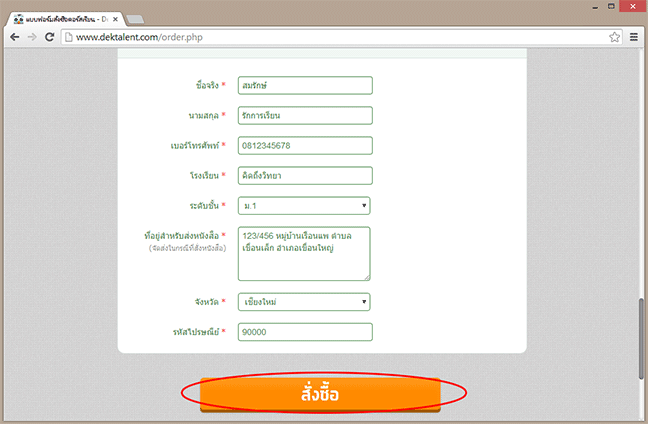 1.7 เมื่อกรอกข้อมูลครบแล้วก็คลิ๊กที่ปุ่ม สั่งซื้อ ได้เลยครับ
