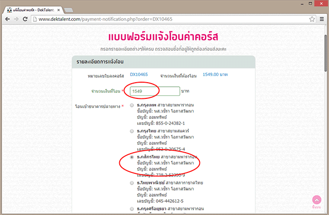 3.7 เมื่อเรียบร้อยแล้วก็คลิ๊กที่ปุ่ม แจ้งโอน เลย