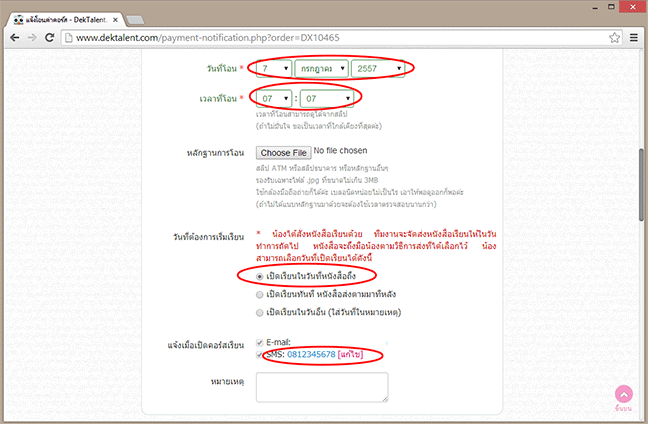 3.6 ตรวจสอบหมายเลขโทรศัพท์เราอีกทีนะครับ เพราะเวลาตอนเปิดคอร์สเรียนแล้วจะมี email และ sms เข้าไปในเบอร์ที่น้องให้ไว้ครับ